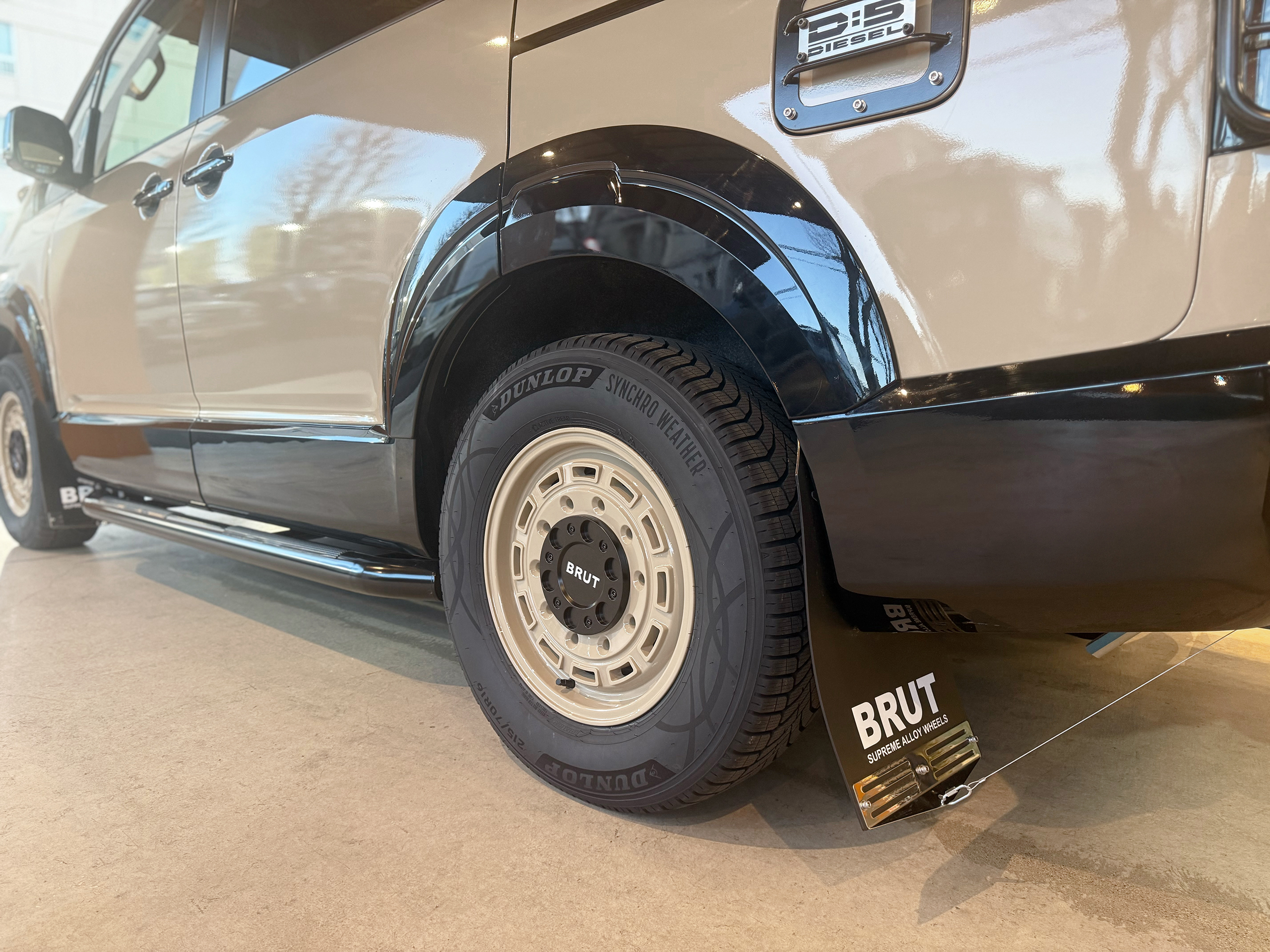 新型デリカD:5 ベージュ カスタム BRUT アルミホイール+BRUT マッドフラップ