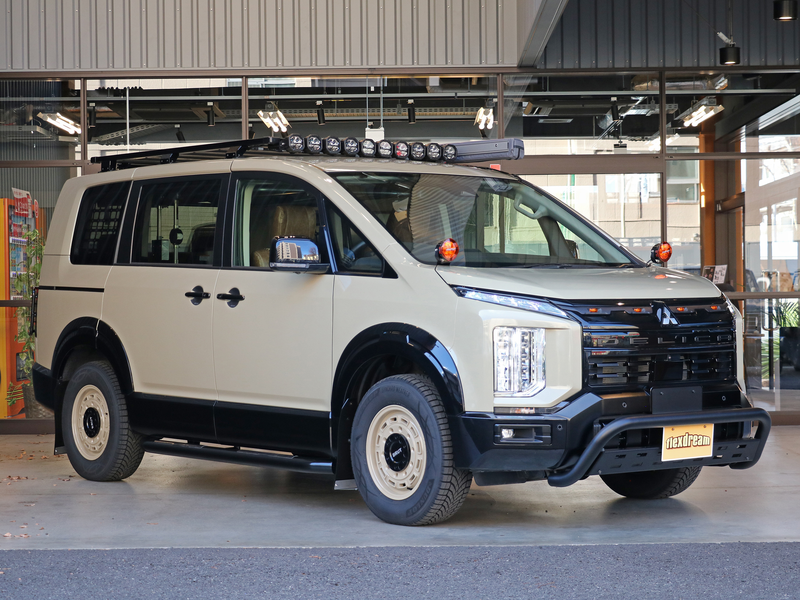 flexdreamらしく、アースカラーのベージュでラッピングを施した新型デリカD:5 カスタム。