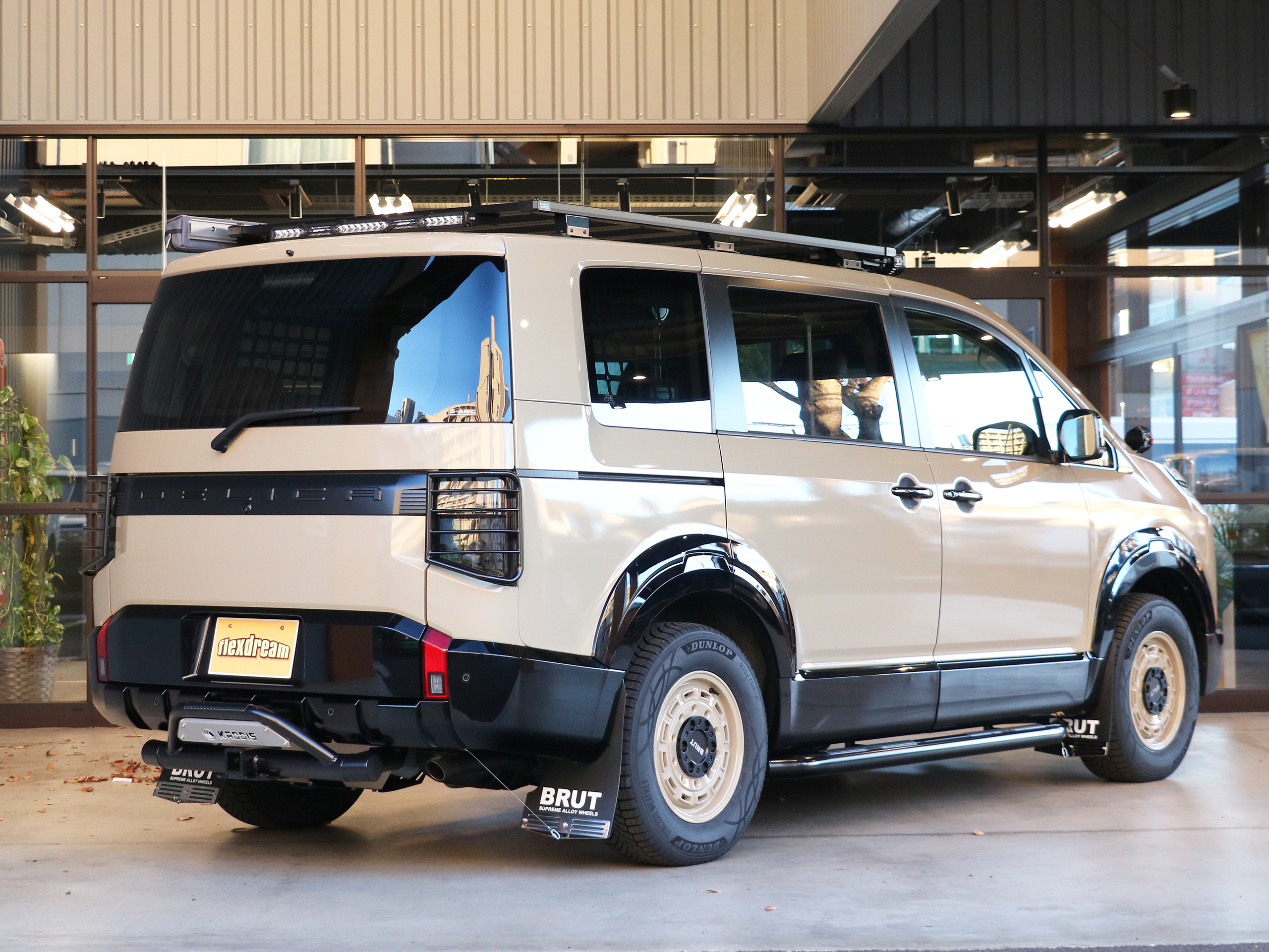 新型デリカD:5 ベージュ カスタム BRUT_BR70アルミホイール-KADDIS チューブサイドステップ ナナロクサン