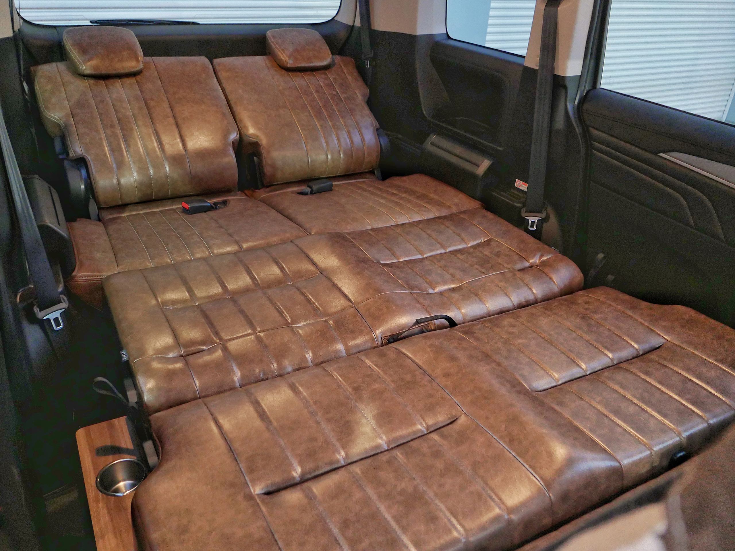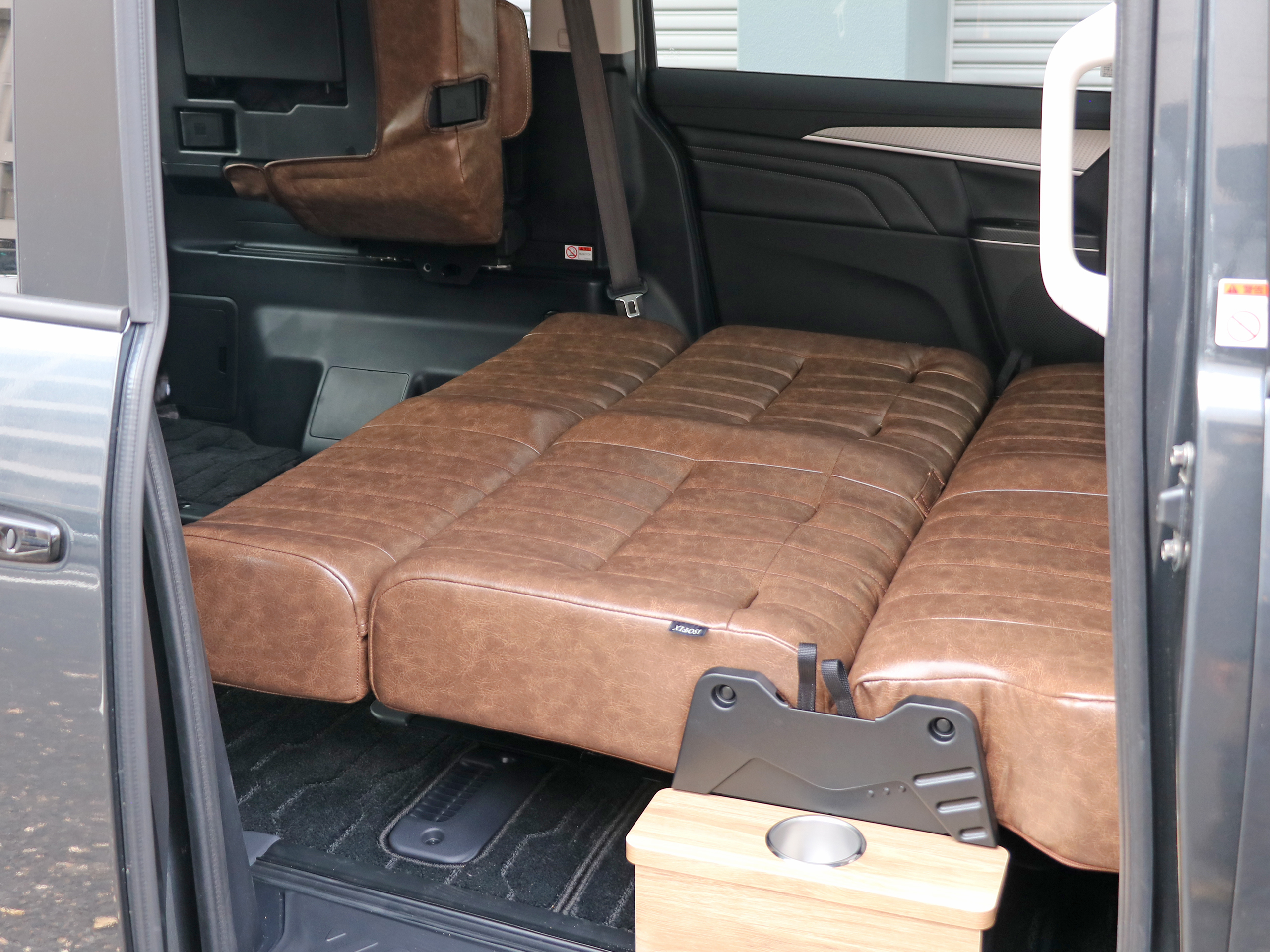 新型デリカD5 内装カスタム MONOBOX(モノボックス)バタフライシート Diseat(フルフラット時)